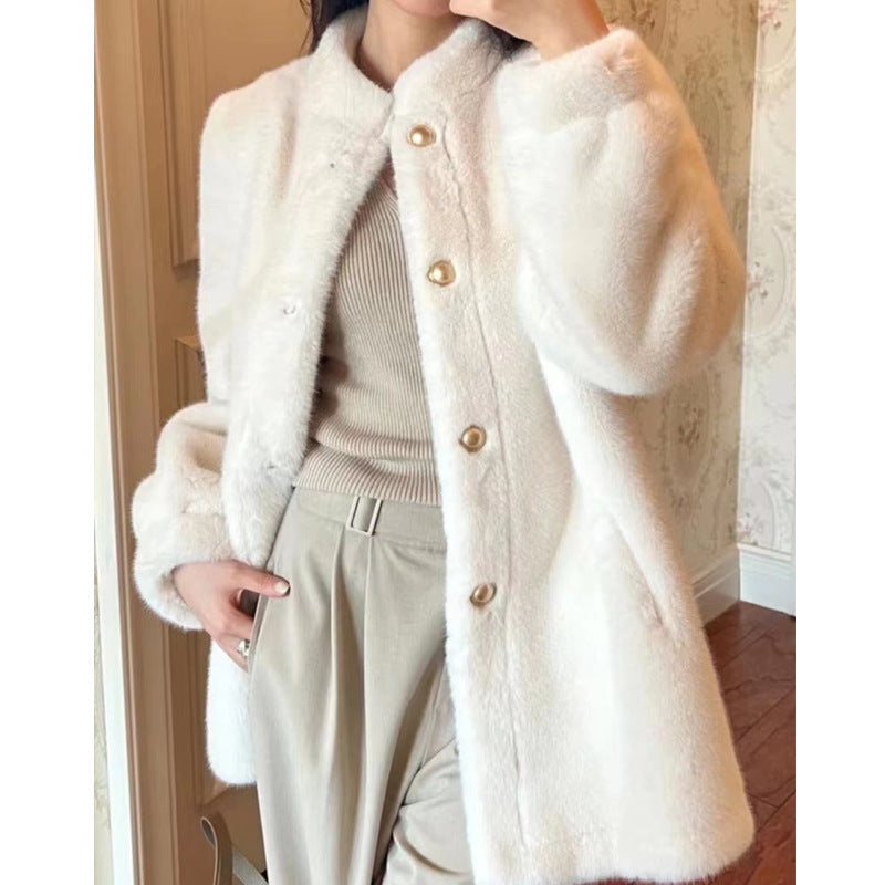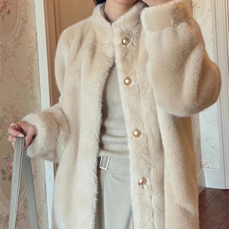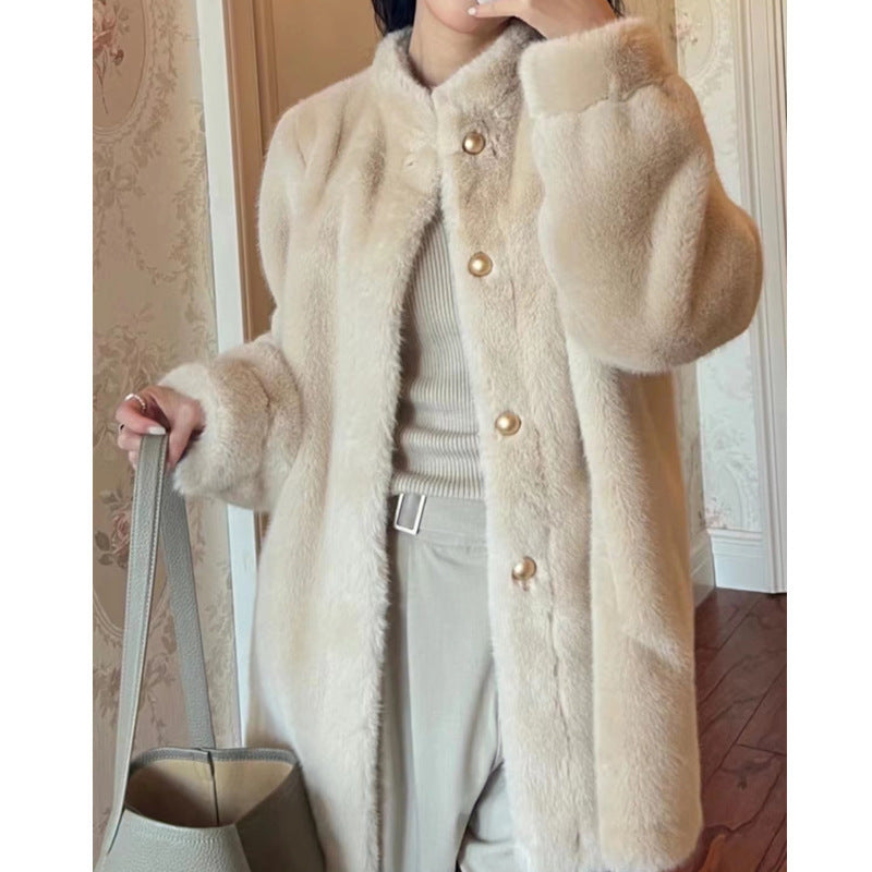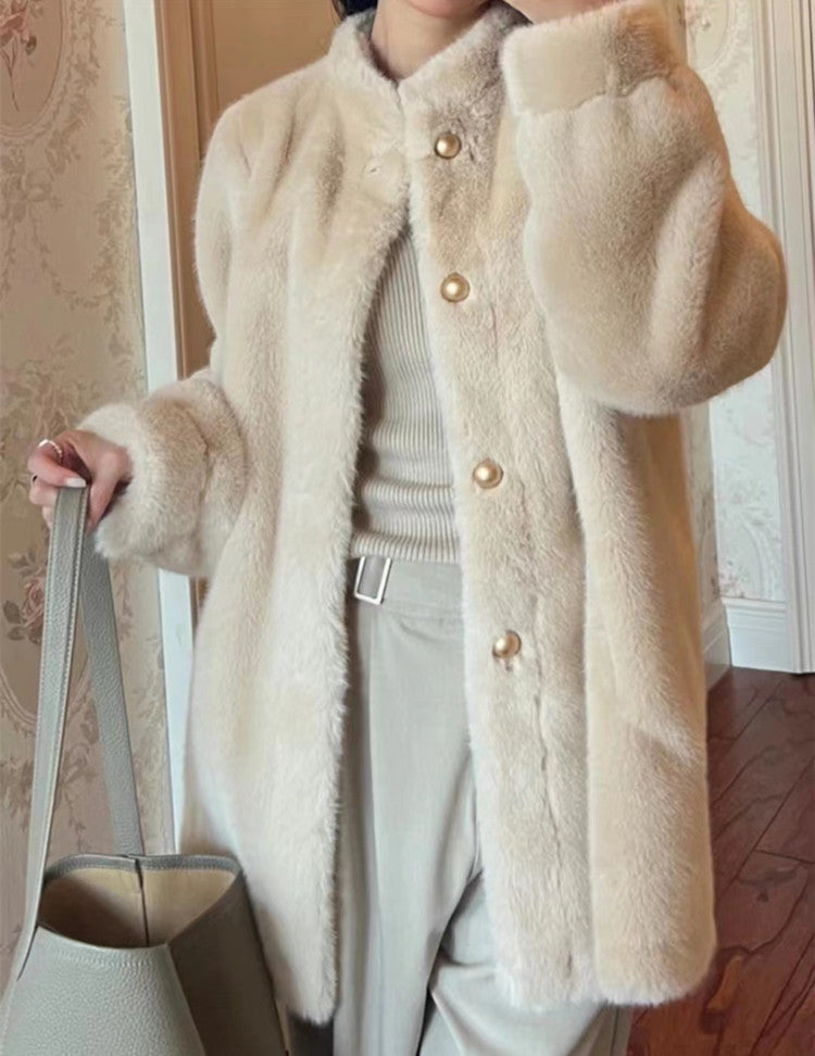 Women's Mid-length Stand-up Collar Cardigan Coat