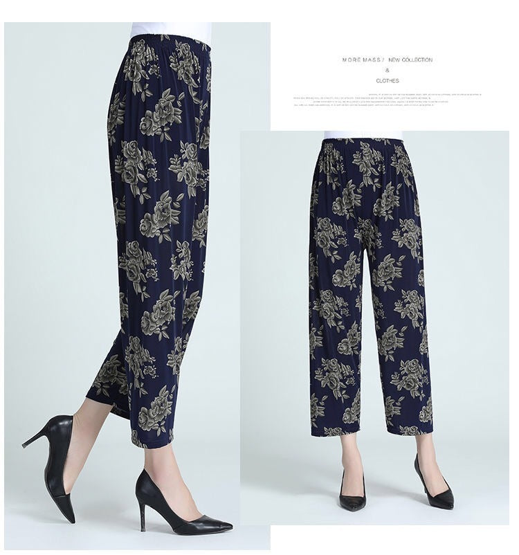 Women's Plus-sized Ice Silk Elastic Pants Cropped Straight
