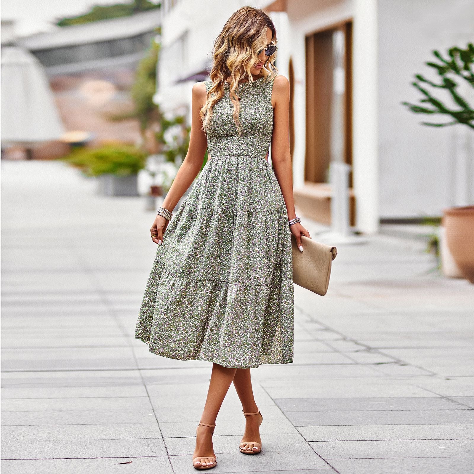 Float through warm days in the Liora Breeze Dress—a sleeveless printed dress that captures the spirit of effortless summer elegance. Crafted from lightweight, breathable fabric, this dress features a vibrant, eye-catching print that brings a splash of personality to your wardrobe. The relaxed silhouette drapes softly over the body, offering freedom of movement and cool comfort. Whether layered with a light cardigan or worn solo, the Liora Breeze is your perfect companion for sunny adventures and casual sophistication.