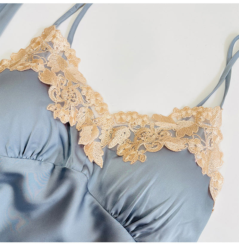 Women's Spring Two Piece Silk Sleeping...