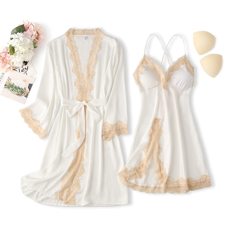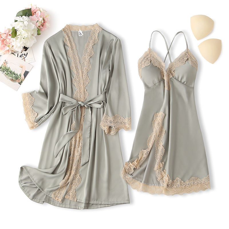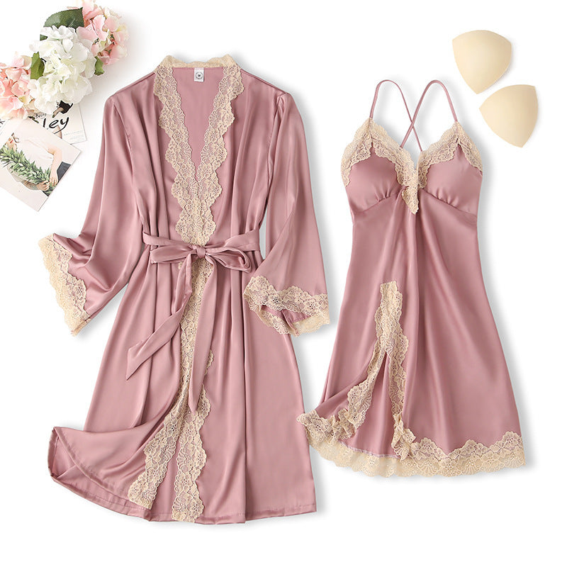 Women's Thin Silk Pajamas With Chest...