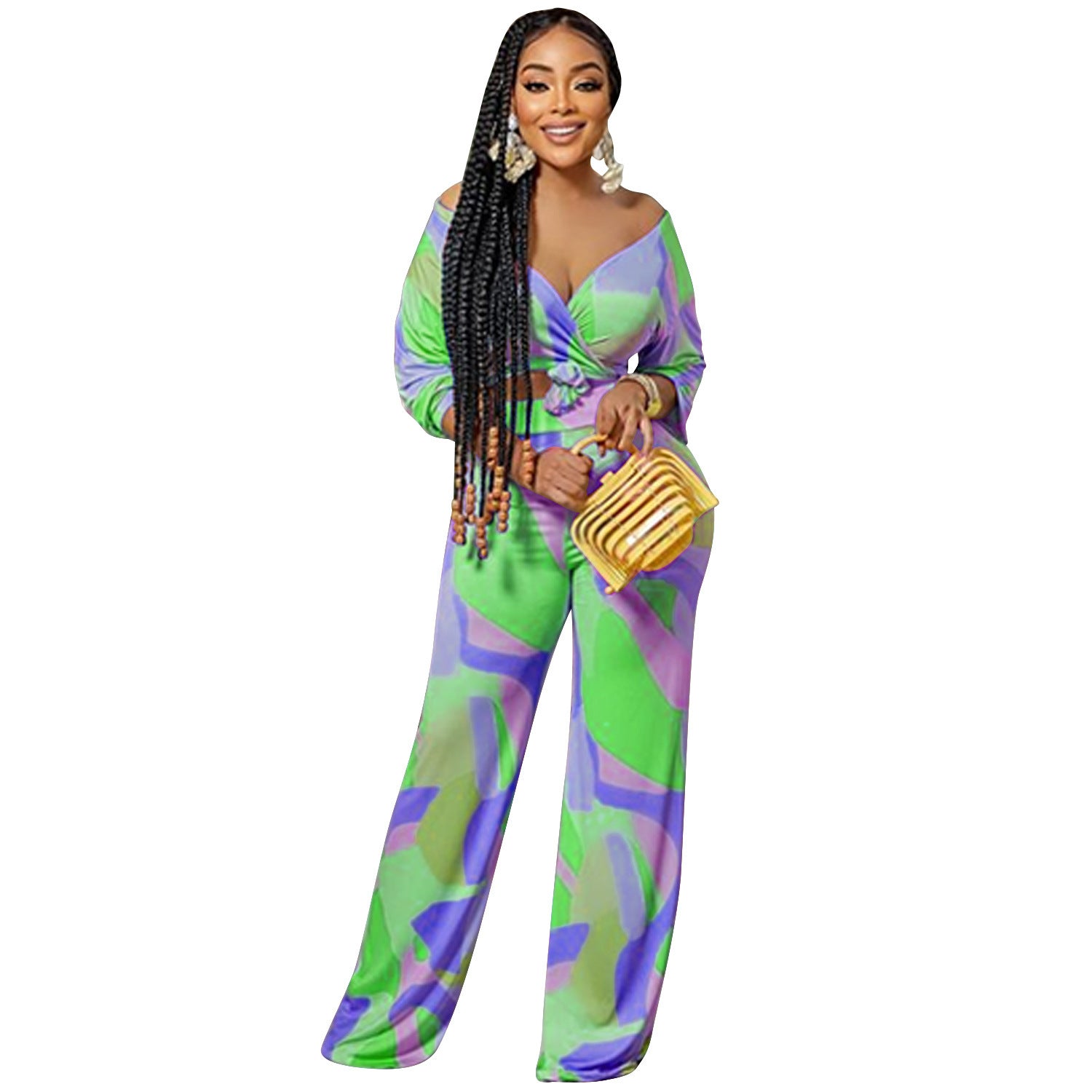 Women's Wear Irregular Pattern Long-sleeved Trousers...