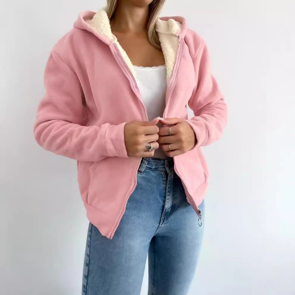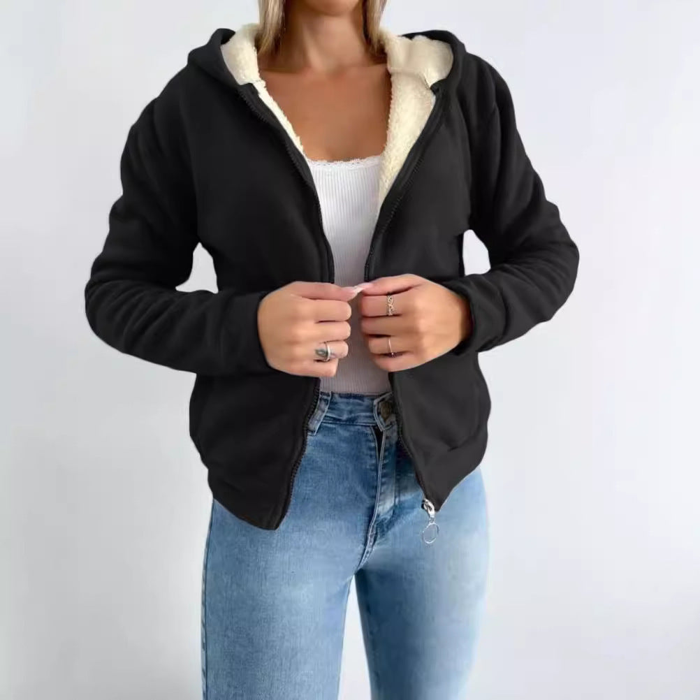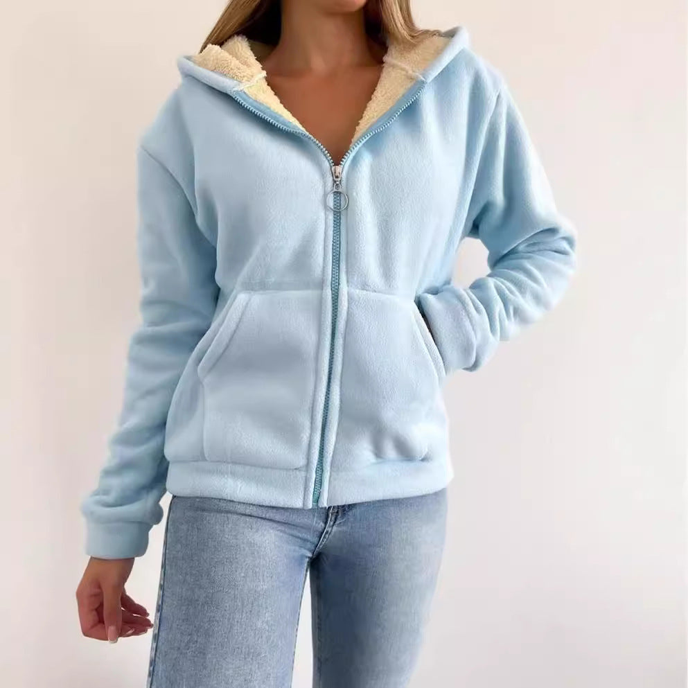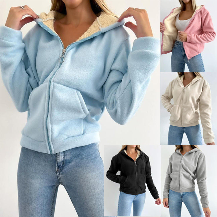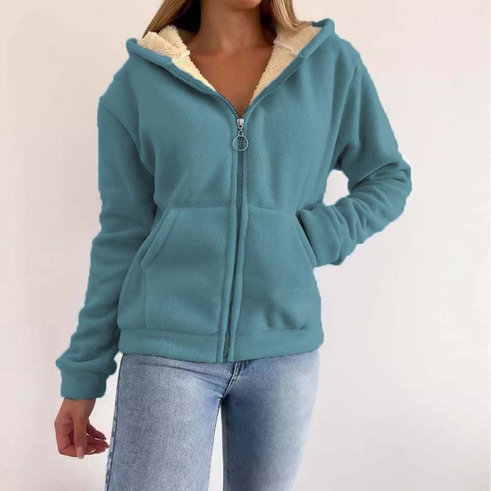 Zipper Kangaroo Pocket Warm Hooded Cardigan...